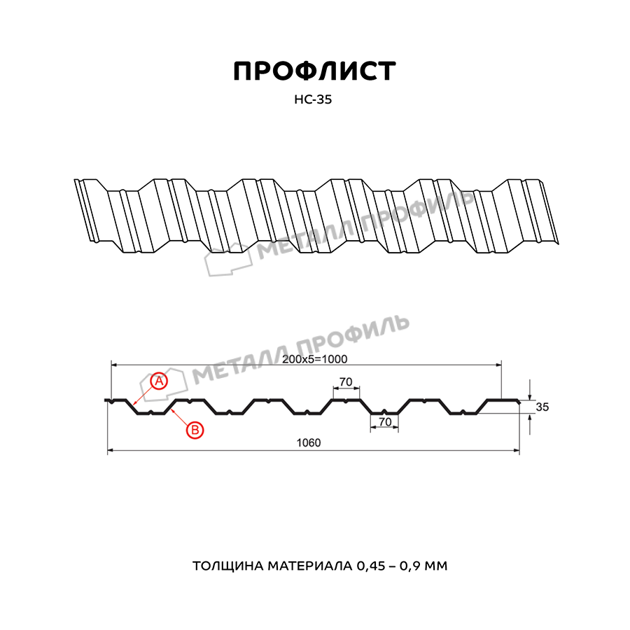 Многоцелевой и выгодный материал с симметричным профилем. Пометка НС значит, что профнастил одновременно и «несущий», и «стеновой». Он пользуется спросом как при строительстве частных домов, так и для индустриальных объектов. С помощью профлиста с высотой волны в 35 мм возводятся строения абсолютно разного плана: каркасные здания ( торговые центры, цеха, склады ), ограждения частных и общественных территорий, быстровозводимые сооружения ( навесы, павильоны ), обустройство кровли. Отличную несущую способность НС-35 обеспечивают дополнительные канавки, проходящие на лицевой и внутренней сторонах листа. Рабочая ширина этого профиля достигает 1000 мм при номинальной ширине 1060 мм, получается, что при установке данного профиля в боковое соединение уйдёт 60 мм. Толщина стали колеблется в диапазоне от 0,5 до 0,9 мм – это обуславливает не только механическую прочность профлиста, но и его вес. Полимерное покрытие из ассортимента Компани Металл Профиль придаст профлисту дополнительную стойкость к коррозии и УФ-излучению.